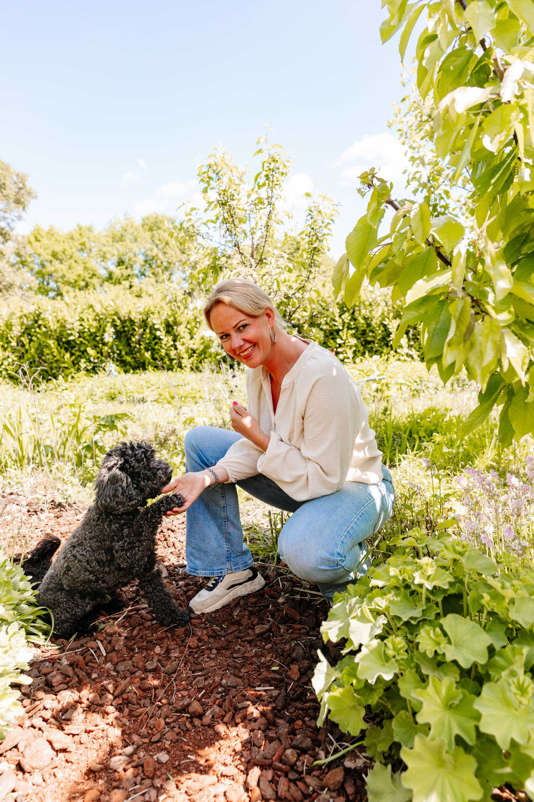 Ik hou van knuffelen, spelen en op schoot zitten, vooral als we vrienden zijn geworden. En in de Groeituin loop ik graag mee, snuffel ik rond en geniet ik van buiten.